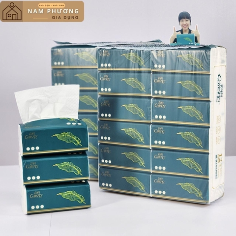 1 bịch giấy gồm 12 gói, mỗi gói 80 lần rút giấy, thoải mái cho gia đình dùng trong cả tháng.
