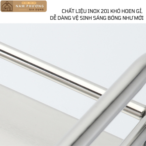 Được làm từ chất liệu inox 201 cao cấp, kệ bếp đa năng có thể chịu được nhiệt độ cao và không dễ bị rỉ sét.