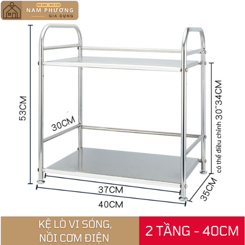 Chiều dài 40cm, chiều rộng 35cm, khoảng cách 2 tầng có thể nới cao 4cm, phù hợp cho mọi kích thước nhà bếp.