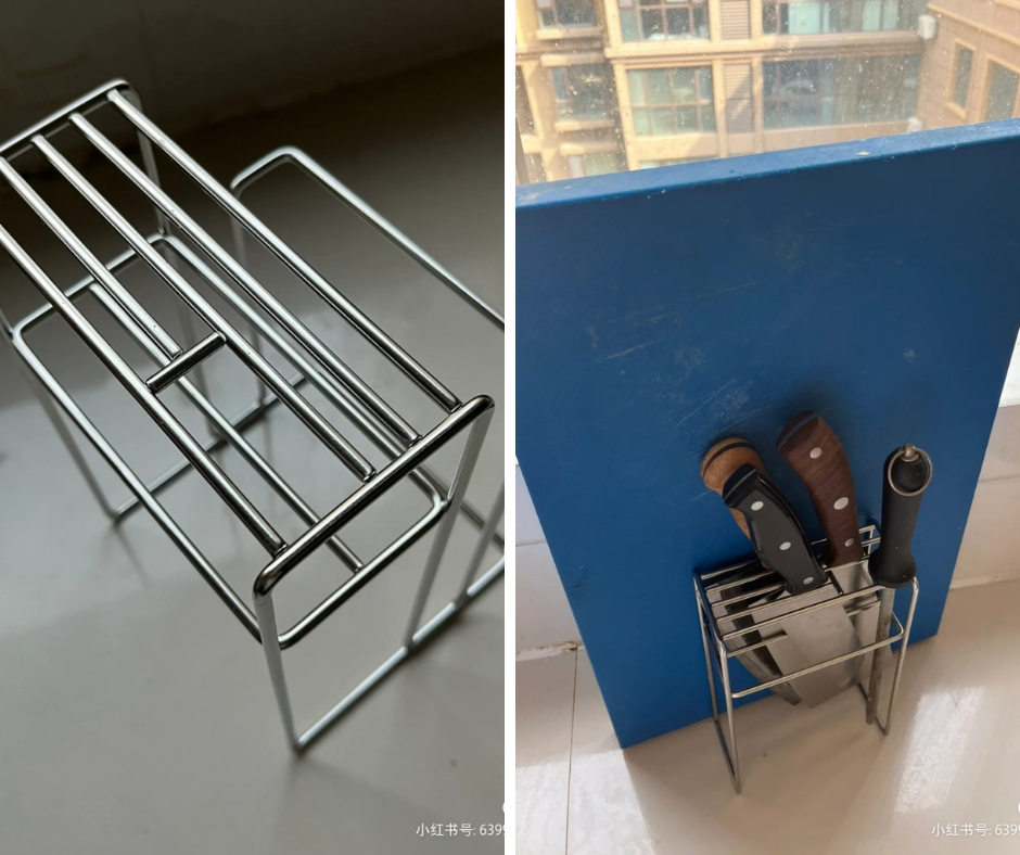 Mình rất đồng ý với chị gái luôn. Mọi người ai cũng có thể dễ dàng mua các giá đựng dao inox tương tự như thế ngay ngoài chợ, dùng rất tốt.