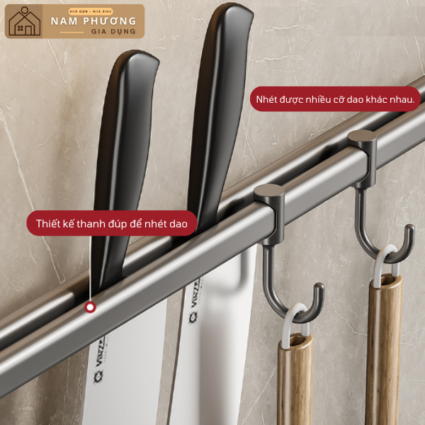 Ngoài ra, nếu chị ấy muốn vừa sạch, vừa đẹp hiện đại và tiết kiệm không gian sàn bếp hơn nữa (treo được nhiều đồ dùng bếp khác không chỉ dao), thì chắc chắn sẽ rất thích các mẫu kệ dao thớt inox treo tường của Nhà Gọn Nhà Xinh - Gia Dụng Nam Phương.